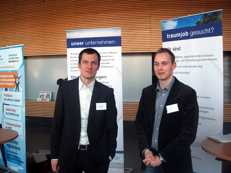 On March 27th the newest edition of the URMO recruiting fair took place at the University of Oldenburg. My boss, Jens Schumann, asked me, if I would like to join him at that event. I accepted the offer, of course, and thus we've spent about 3,5 hours looking out for people interested in OpenKnowledge (the company I work for) and had some nice chitchat with them.